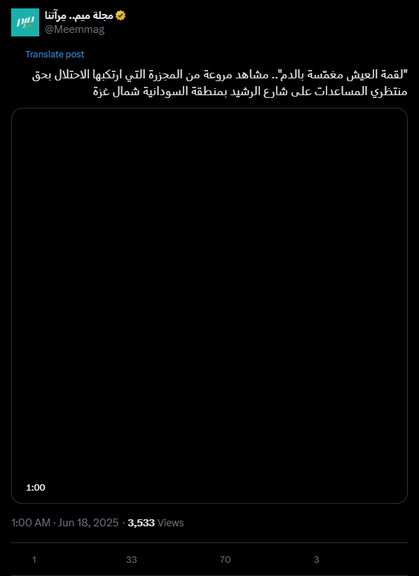 "لقمة العيش مغمّسة بالدم".. مشاهد مروعة من المجزرة التي ارتكبها الاحتلال بحق منتظري المساعدات على شارع الرشيد بمنطقة السودانية شمال غزة