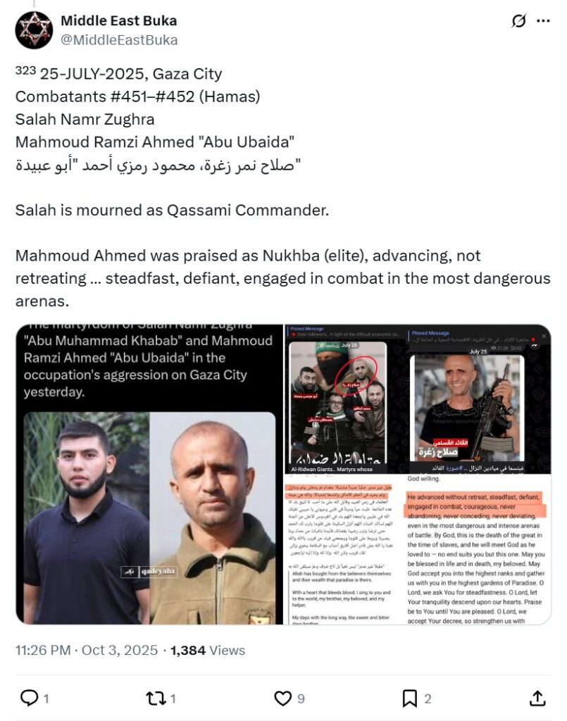 Mahmoud Ahmed was praised as Nukhba (elite), advancing, not retreating … steadfast, defiant, engaged in combat in the most dangerous arenas.