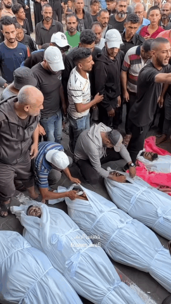 Continuous farewells are taking place everywhere... from the farewells of the martyrs of the Al-Aqsa Martyrs Hospital mosque massacre in Deir al-Balah, central Gaza Strip.