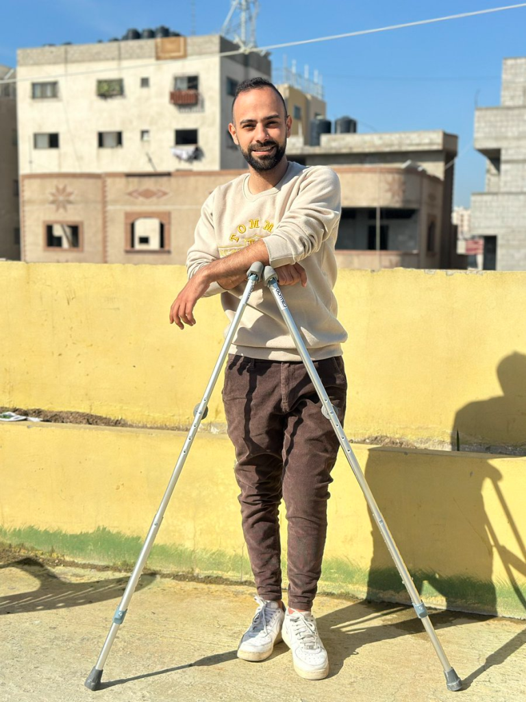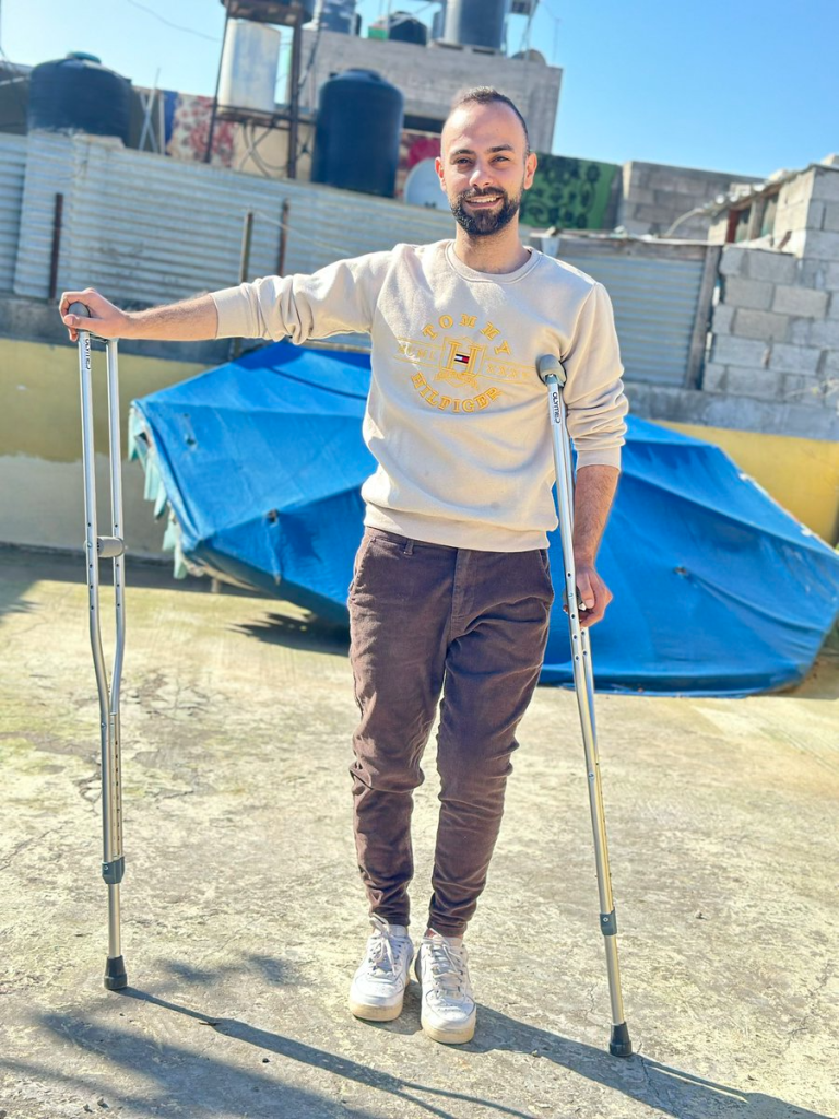 شعور الفرحة بمشي على عكاكيز بعد 70 يوم نوم على ظهري رُغم هول الحُزن الداخلي .