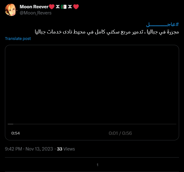 #Urgent: A massacre in Jabalia, the destruction of an entire residential block in the vicinity of the Jabalia Services Club.