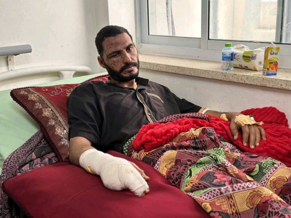 A month ago, the occupation forces targeted the journalists' tent, burning Ahmed Mansour and seriously wounding Hassan Aslih. A few moments ago, Israeli aircraft targeted Hassan Aslih's treatment room... and he was martyred. Israel killed more than 200 journalists... A martyr in heaven, Hassan.