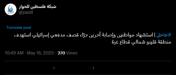 #عاجل | استشهاد مواطنين وإصابة آخرين جرّاء قصف مدفعي إسرائيلي استهدف منطقة قليبو شمالي قطاع غزة