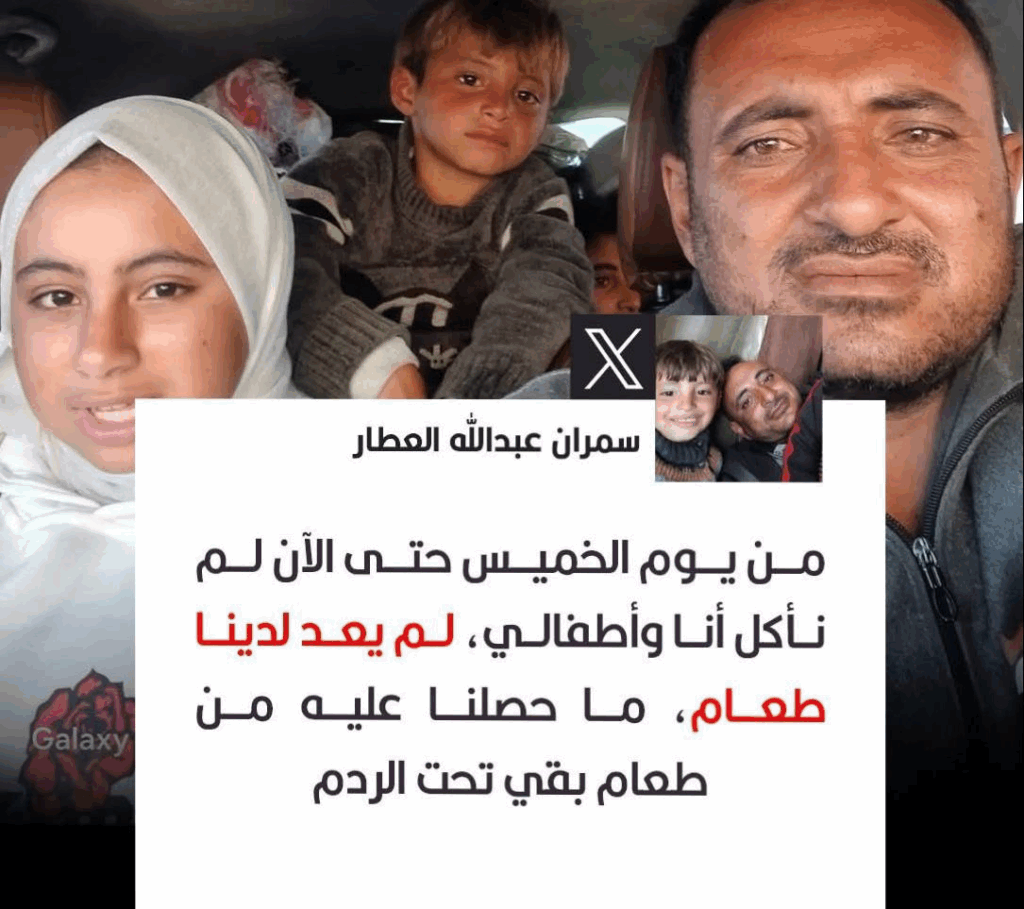 He wrote this and then died of hunger hours later! The last words of Palestinian Samran Abdullah Al-Attar as a result of the Israeli airstrike on Beit Lahia, north of the Gaza Strip: "Since Thursday until now, my children and I haven't eaten. We no longer have any food. What food we got remained under the rubble."
