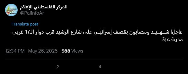 Urgent | One martyr and several wounded in an Israeli attack on Rashid Street near Roundabout 17, west of Gaza City.