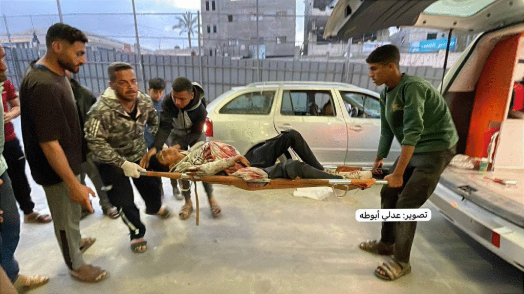 #صور | وصول إصابات إلى مستشفى ناصر جراء إطلاق الاحتلال النار على النازحين خلال انتظارهم للمساعدات الأمريكية محيط دوار العلم غرب رفح