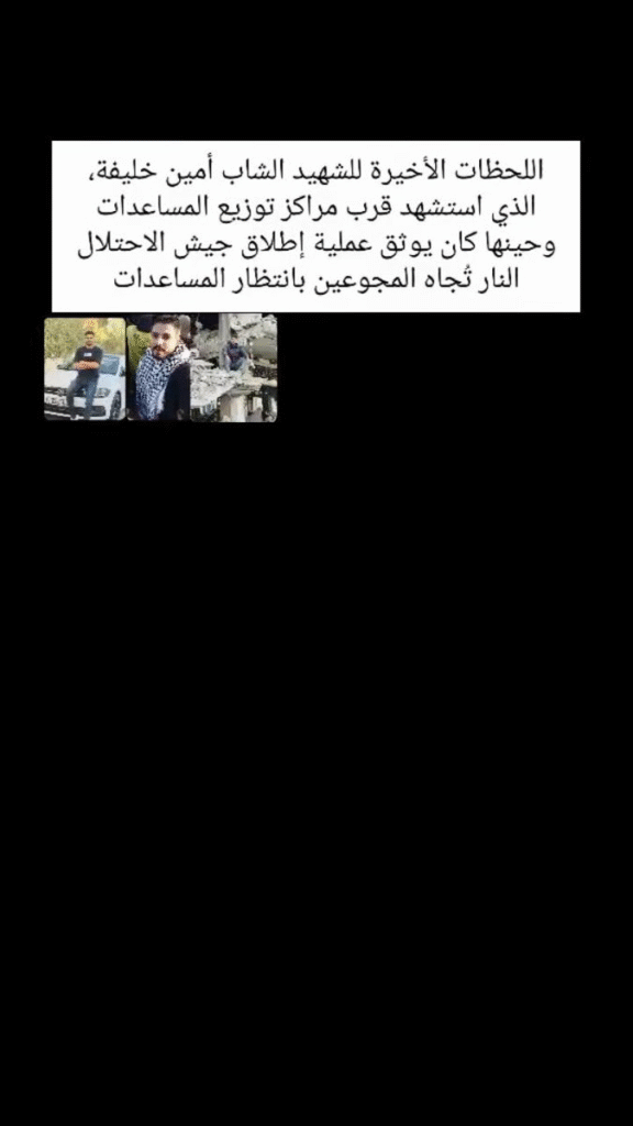 #شاهد | اللحظات الأخيرة للشهيد امين خليفة، الذي استشهد قرب مراكز توزيع المساعدات .