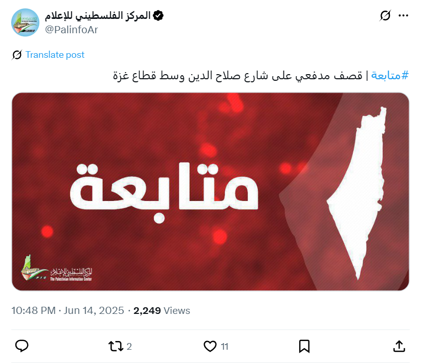 #Follow-up | Artillery shelling on Salah al-Din Street in the central Gaza Strip