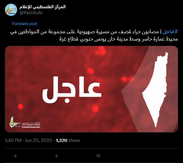 #عاجل | مصابون جراء قصف من مسيرة صهيونية على مجموعة من المواطنين في محيط عمارة جاسر وسط مدينة خان يونس جنوبي قطاع غزة