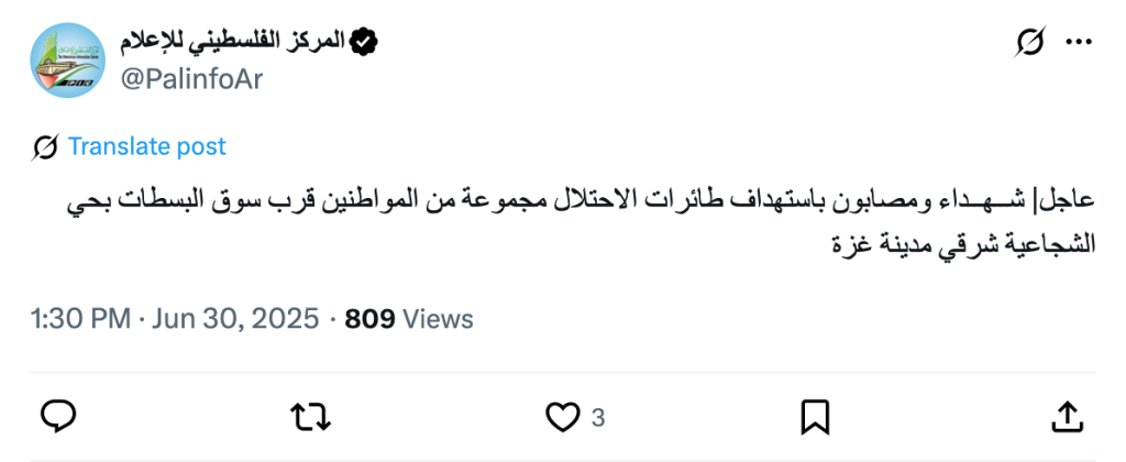 Urgent | Martyrs and wounded as Israeli warplanes targeted a group of citizens near the stalls market in the Shuja'iyya neighborhood, east of Gaza City.