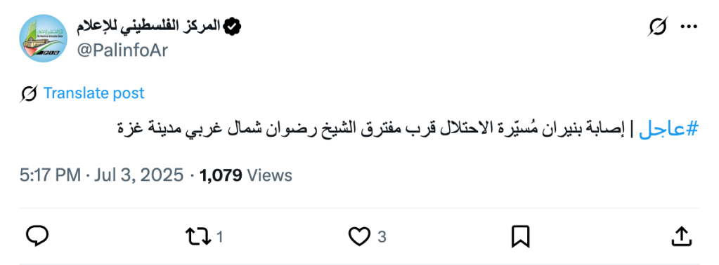 #Urgent | A person was injured by Israeli drone fire near Sheikh Radwan Junction, northwest of Gaza City.