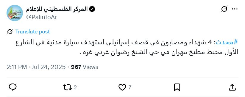 #Updated: 4 martyrs and wounded in an Israeli bombing that targeted a civilian car on the first street around Mahran Kitchen in the Sheikh Radwan neighborhood, west of Gaza.