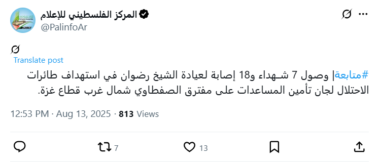 #Follow-up | 7 martyrs and 18 injured arrived at Sheikh Radwan Clinic after Israeli aircraft targeted aid securing committees at the Saftawi junction, northwest of the Gaza Strip.