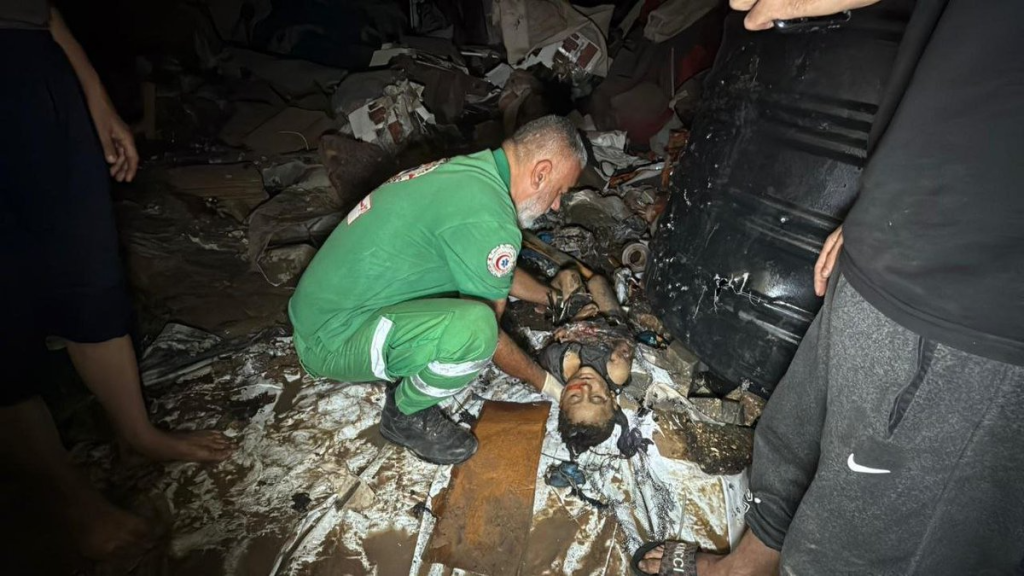 انتشال 5 شـ.ـهداء "أب وأم وأطفالهم الثلاثة" جراء قصف الاحتلال خيمتهم في شارع الجلاء بمدينة غزة