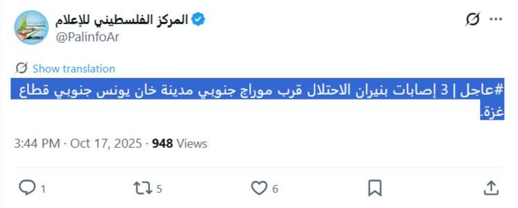 #عاجل | 3 إصابات بنيران الاحتلال قرب موراج جنوبي مدينة خان يونس جنوبي قطاع غزة.