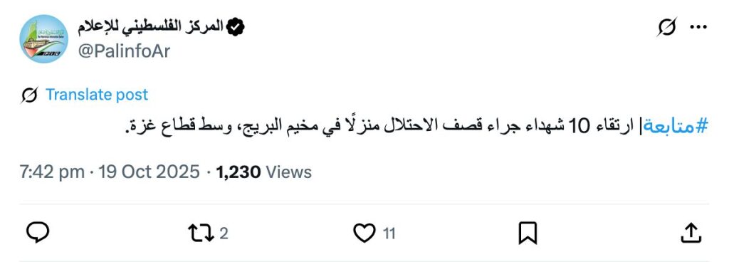 #Follow-up | 10 martyrs killed as a result of the occupation forces' bombing of a house in Al-Bureij camp, central Gaza Strip.