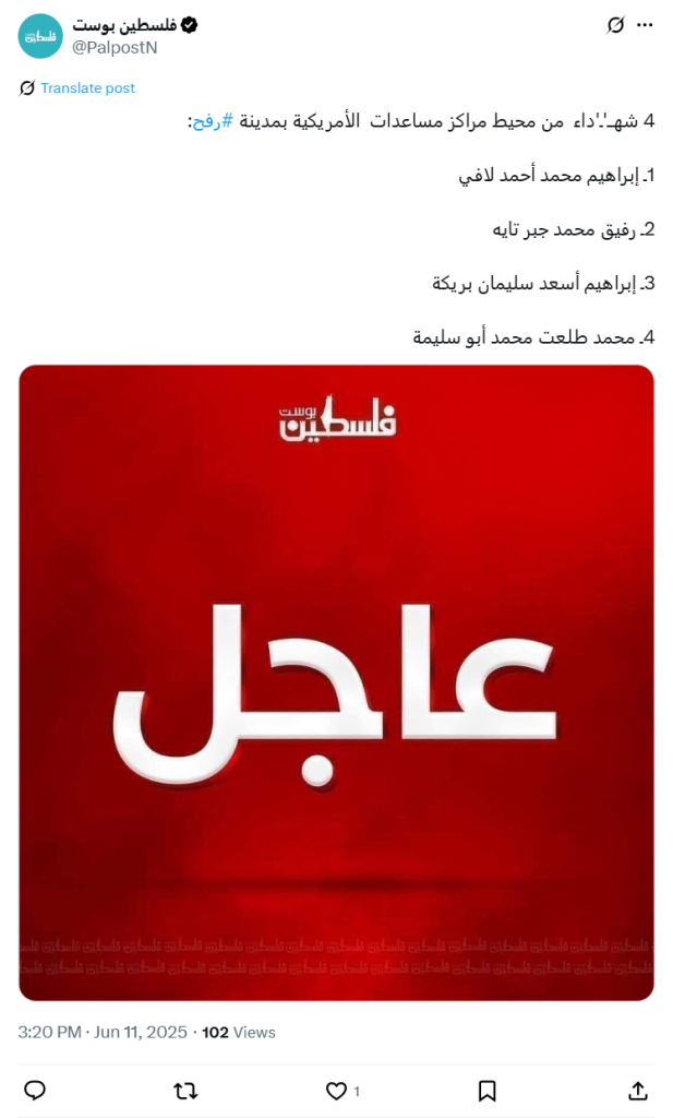 4 شهــ'ـ'داء من محيط مراكز مساعدات الأمريكية بمدينة #رفح:
