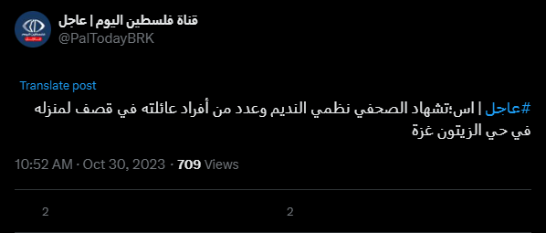 #عاجل | اس؛تشهاد الصحفي نظمي النديم وعدد من أفراد عائلته في قصف لمنزله في حي الزيتون غزة