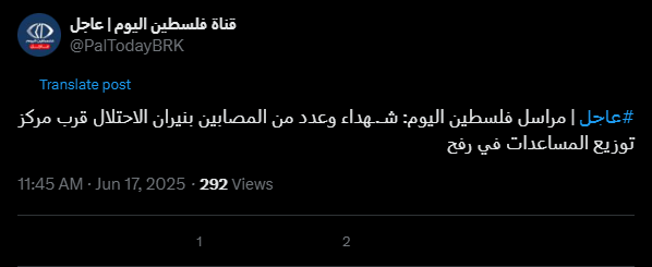 #عاجل | مراسل فلسطين اليوم: شـ.ـهداء وعدد من المصابين بنيران الاحتلال قرب مركز توزيع المساعدات في رفح