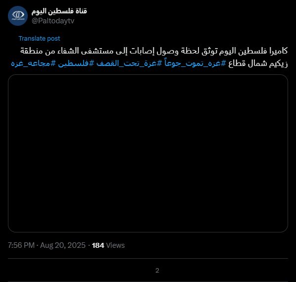 كاميرا فلسطين اليوم توثق لحظة وصول إصابات إلى مستشفى الشفاء من منطقة زيكيم شمال قطاع #غزه_تموت_جوعاً #غزة_تحت_القصف #فلسطين #مجاعه_غزه