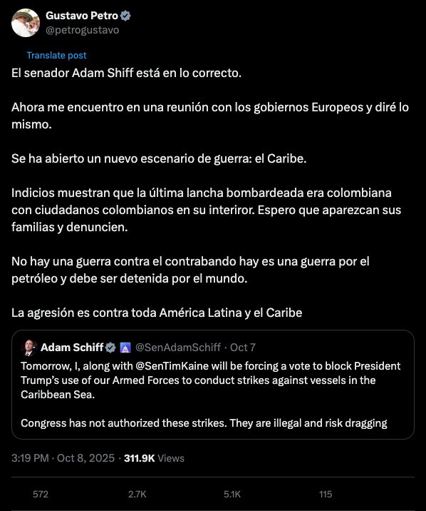 Evidence shows that the last boat bombed was Colombian, with Colombian citizens inside. I hope their families come forward and file complaints.