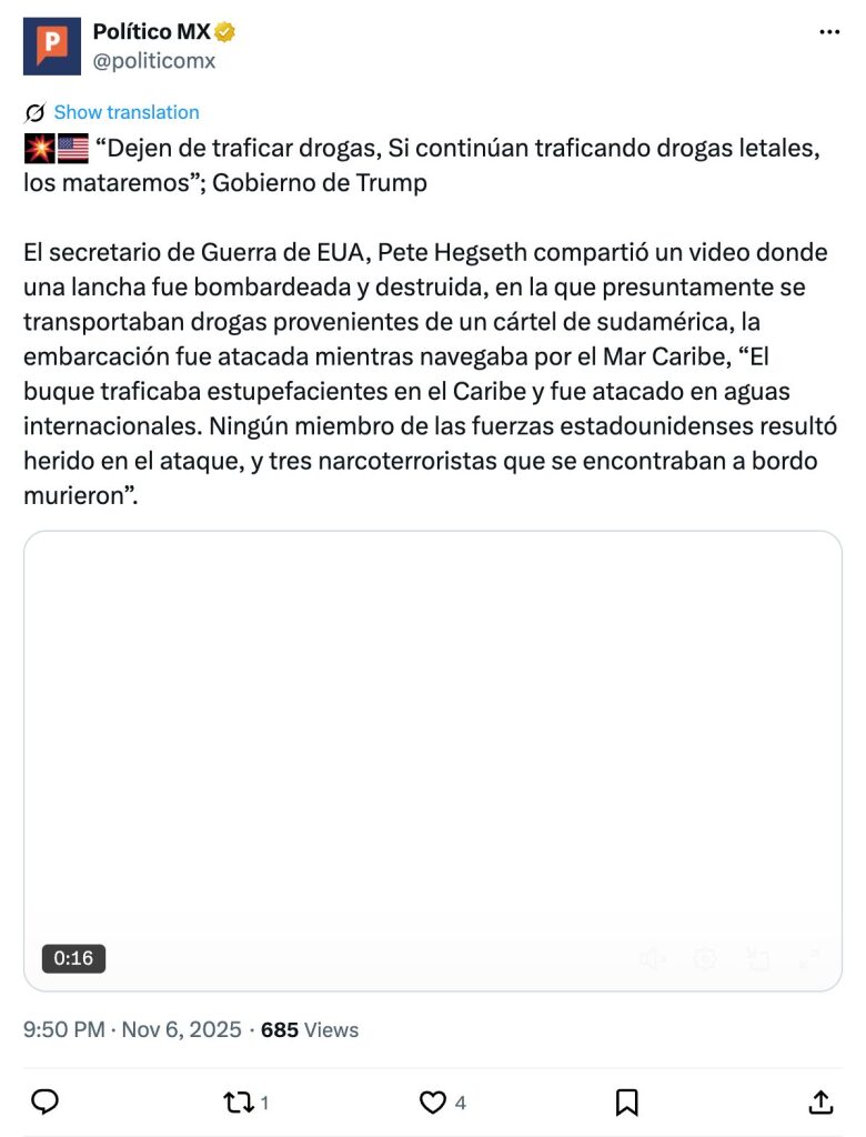 Archive URL: https://airwars.org/source/x-com-politicomx-1986642353348653458-2025-11-07-035021/