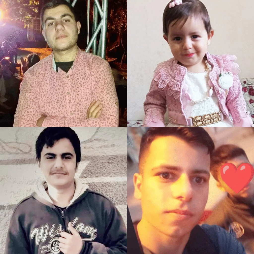 The "Dabo" family martyrs in yesterday's targeting of Jabalia al-Balad, north of the Gaza Strip: - Mamoun Amer Dabo - The child Hala Mamoun Dabo - Othman Amer Dabo - Abdul Rahman Raed Dabo
