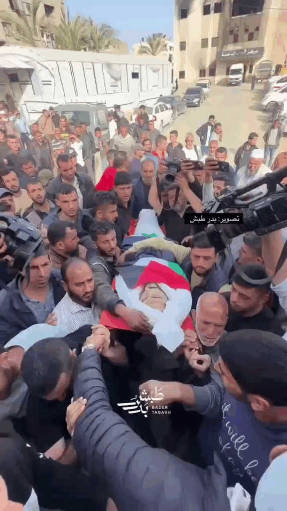 The funeral of martyred journalist Hassan Aslih, who was assassinated by the occupation forces at dawn today, began at Nasser Hospital in Khan Yunis.