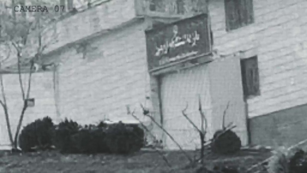 The video shows the entrance of Evin Prison during the Israeli strike