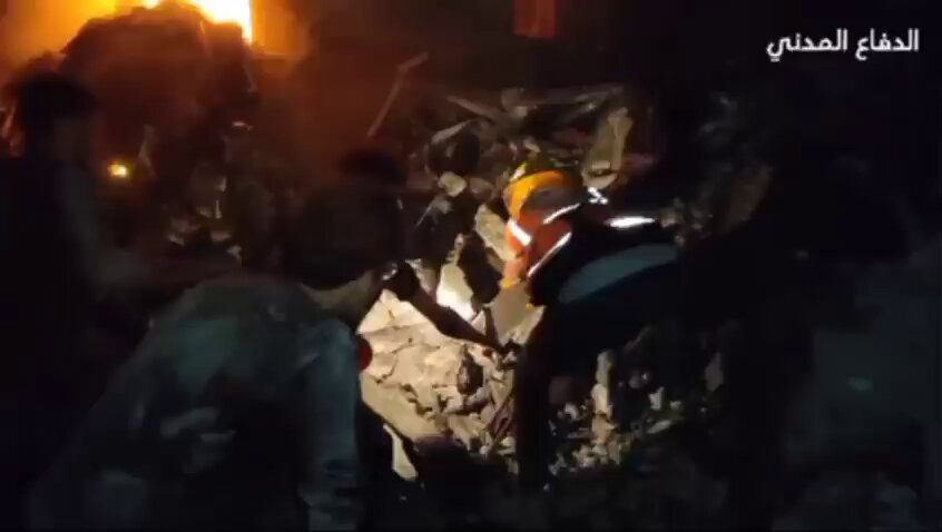 طواقم الدفاع المدني تتمكن من إنقاذ امرأة من ركام منزل عائلة "صيدم" الذي استهدفه الاحتلال في المخيم الجديد بالنصيرات وسط القطاع.