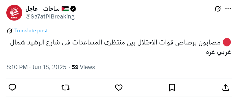 مصابون برصاص قوات الاحتلال بين منتظري المساعدات في شارع الرشيد شمال غربي غزة