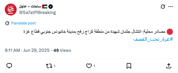 Local sources: The body of a martyr was recovered from the Rafah garage area in Khan Yunis, south of the Gaza Strip. #Gaza_Under_Bombing