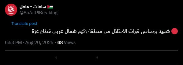 A martyr was shot by the occupation forces in the Zikim area, northwest of the Gaza Strip.