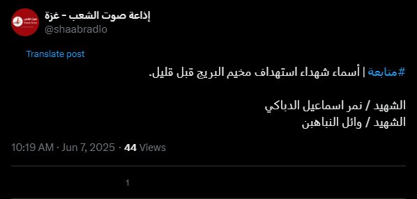 #متابعة | أسماء شهداء استهداف مخيم البريج قبل قليل.