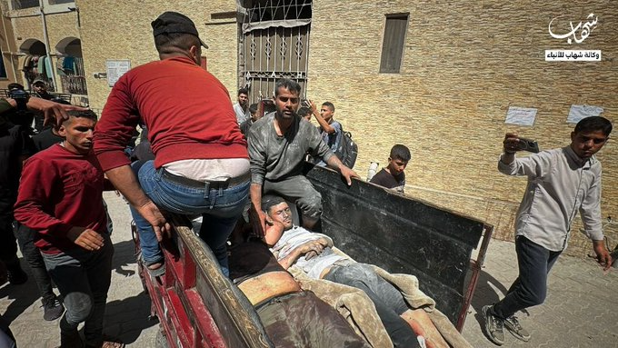 #صور | من وصول عدد من الشهداء والجرحى إلى مستشفى المعمداني جرّاء استهداف الاحتلال مدرسة الكرامة بحي التفاح شرق مدينة غزة.