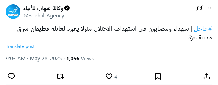 #Urgent | Martyrs and wounded as the occupation forces target a home belonging to the Qatifan family east of Gaza City.