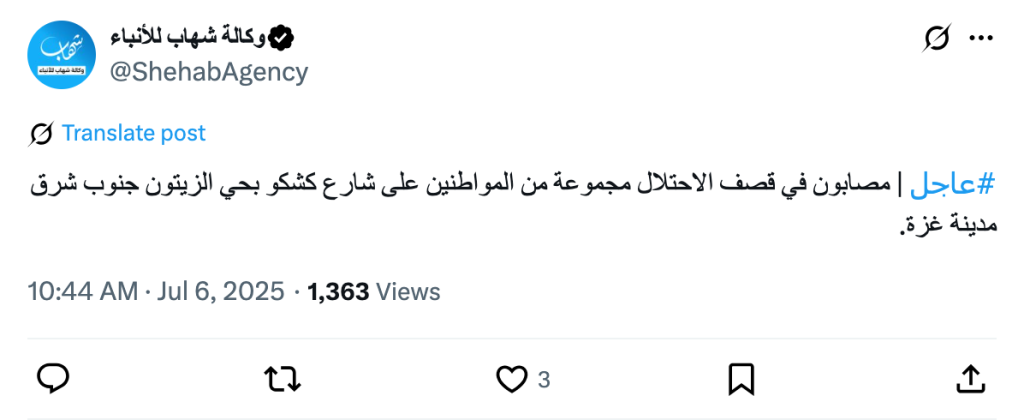 #Urgent | Injured as the occupation forces bombed a group of citizens on Kashko Street in the Zeitoun neighborhood, southeast of Gaza City.