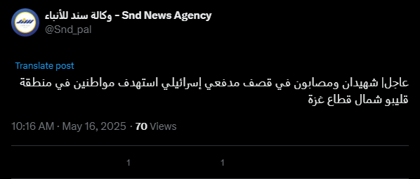Urgent | Two martyrs and several wounded in Israeli artillery shelling targeting civilians in the Qalibu area, north of the Gaza Strip.