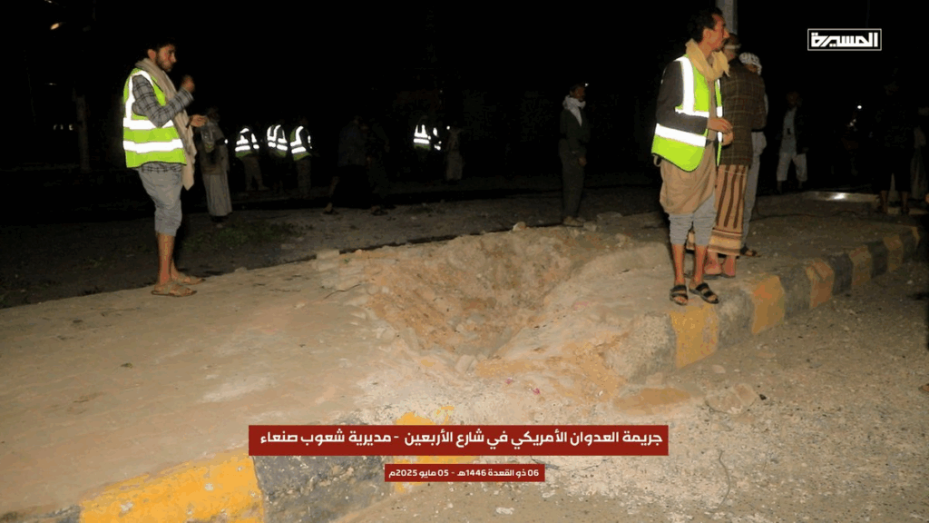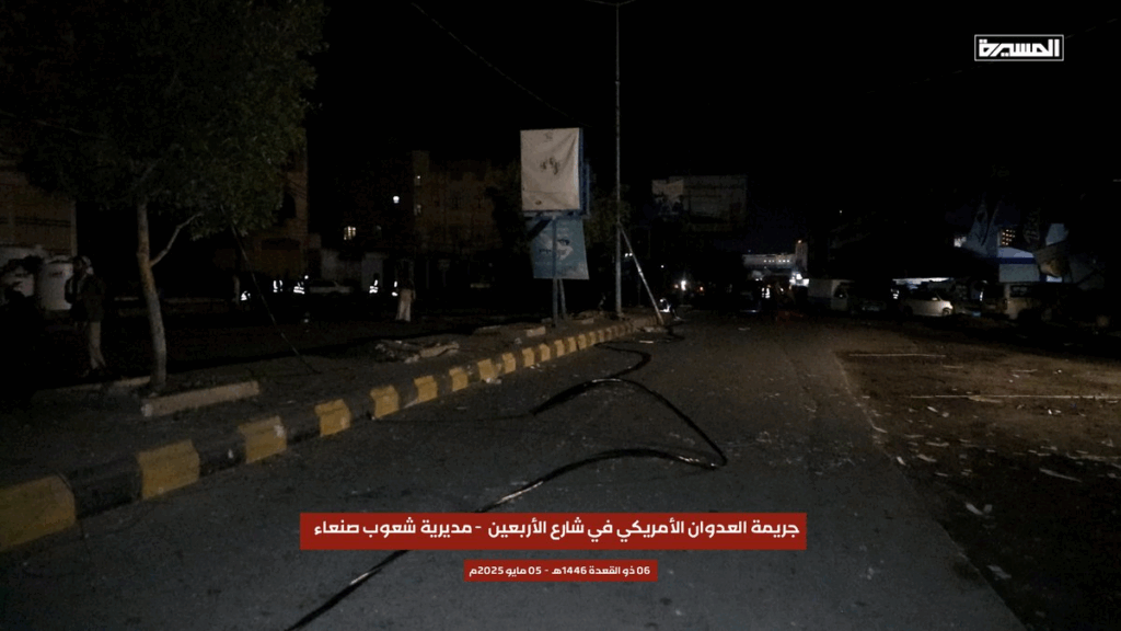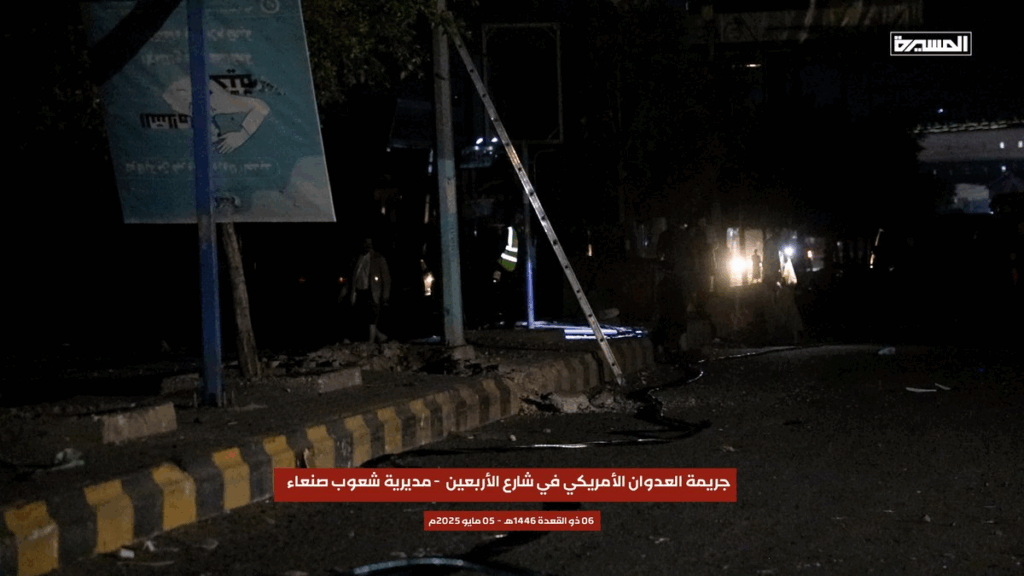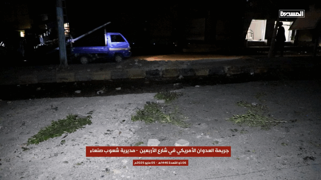 صور لآثار القصف الأمريكي الذي استهدف شارع الأربعين بمديرية شعوب في #صنعاء ما أدى لإصابة 14 مواطناً من المارة وأصحاب المحلات التجارية