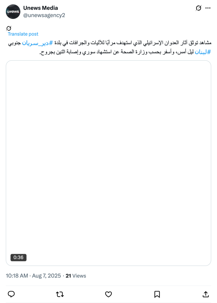 Archive URL: https://airwars.org/source/x-com-unewsagency2-1953355092368748883-2025-08-07-071840/