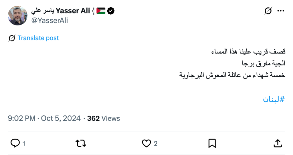 Archive URL: https://airwars.org/source/x-com-yasserali-1842626554079113231-2024-10-05-180259/