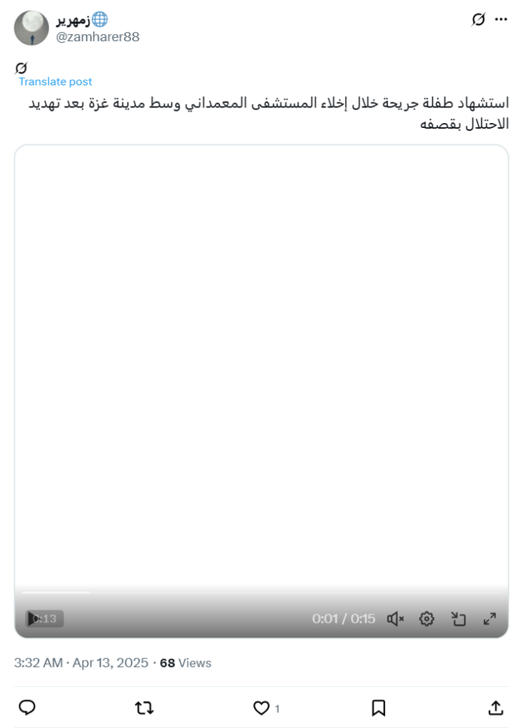 A wounded child was killed during the evacuation of the Baptist Hospital in central Gaza City after the occupation threatened to bomb it.