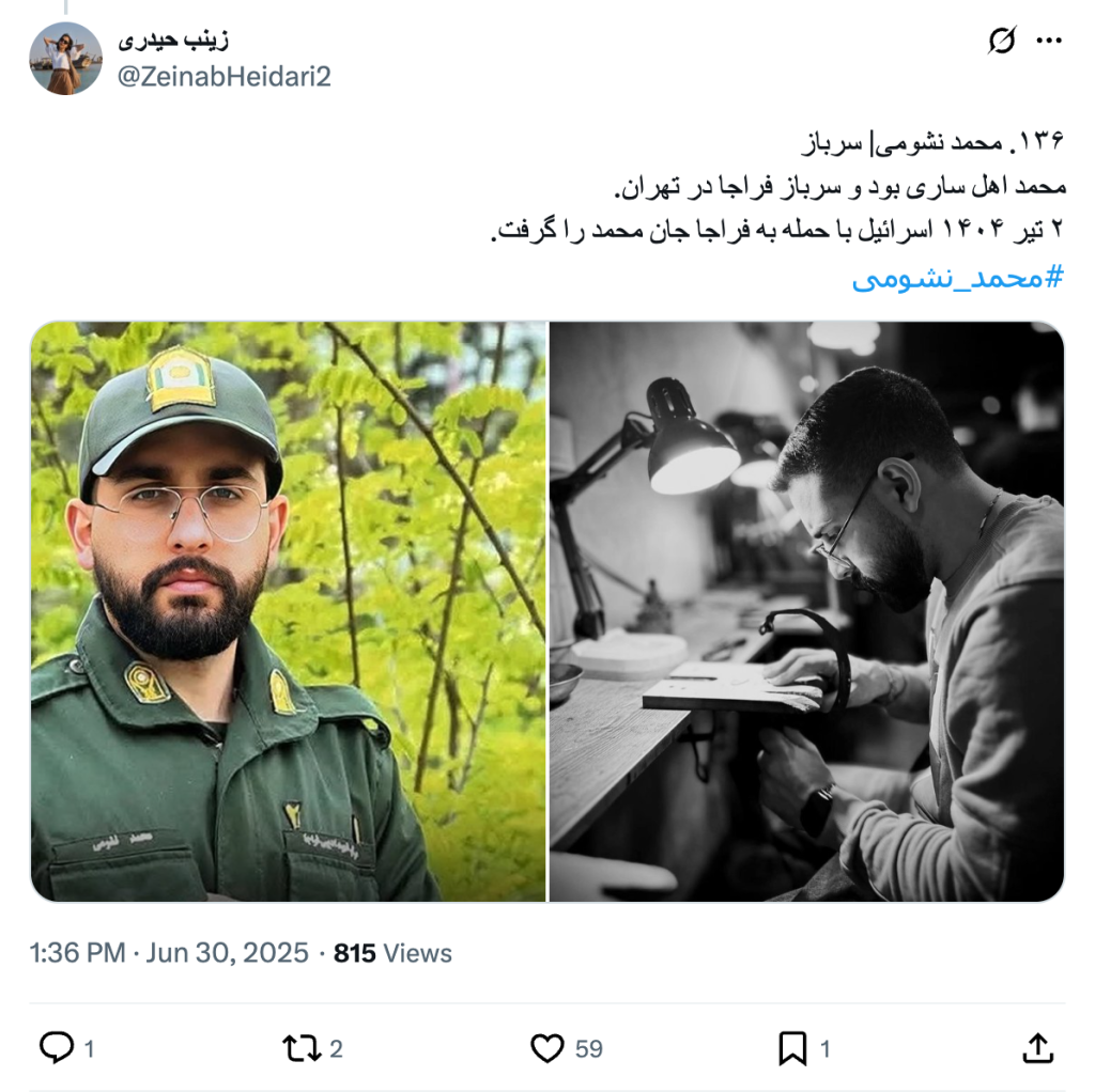 136. Mohammad Nashomi | Mohammad was a soldier from Sari and a soldier from Faraj in Tehran. Israel took Mohammad's life by attacking Faraj on June 23, 2025 #Mohammad_Nashomi