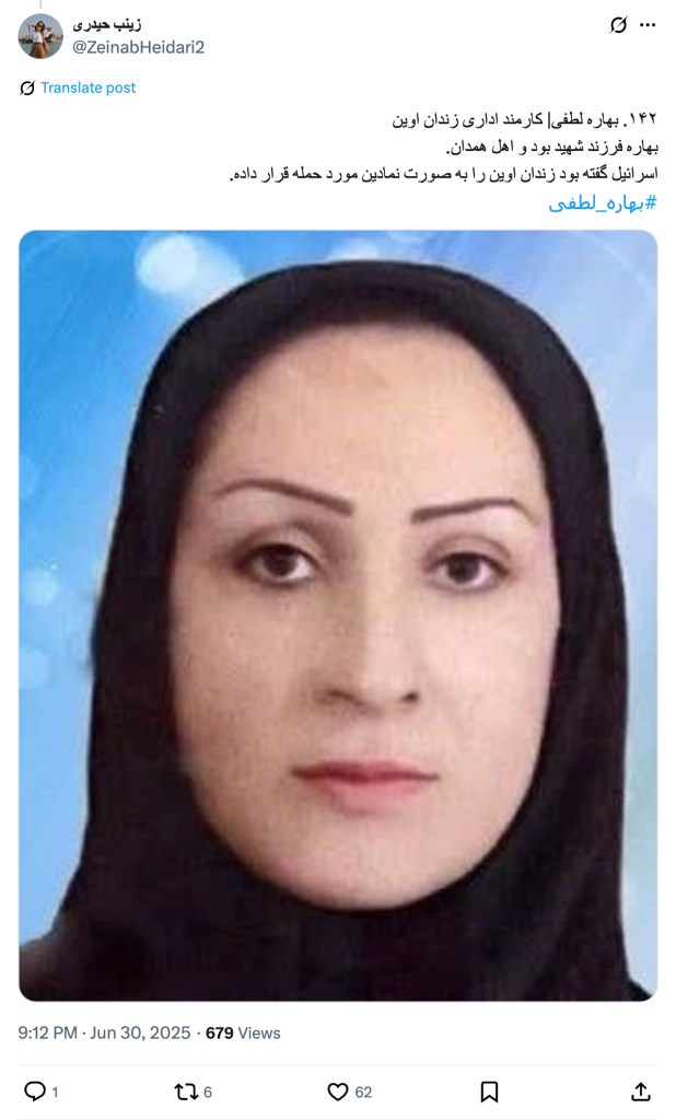 142. Bahare Lotfi | Evin Prison Administrative Employee Bahare was the daughter of a martyr and was from Hamedan. Israel had said that it had symbolically attacked Evin Prison. #Bahareh_Lootfi