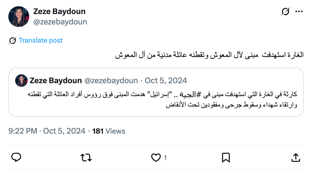 The raid targeted a building belonging to the Al-Maoush family, inhabited by a civilian family from the Al-Maoush family.